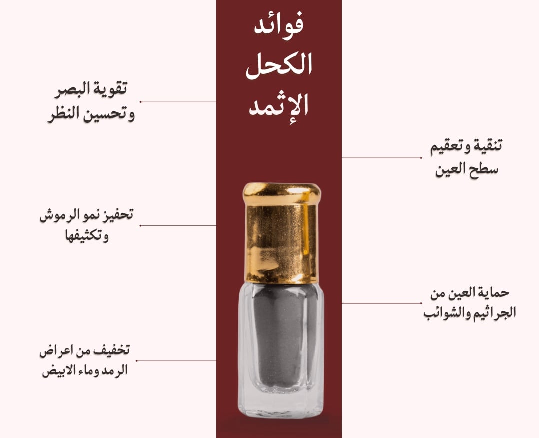 تقوية الرموش: يُعتقد أن استخدام كحل الاثمد يعزز من صحة الرموش، مما يؤدي إلى تقويتها وزيادة كثافتها.
