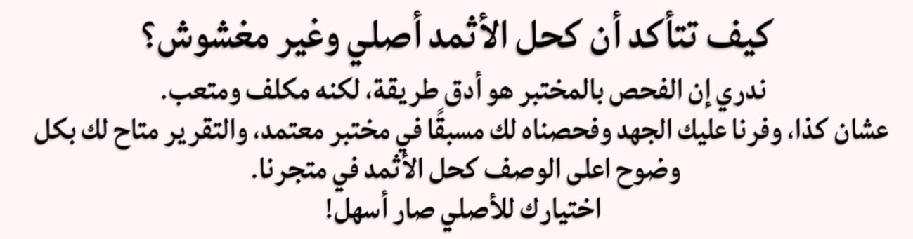 - التأكد من المصدر: يجب شراء كحل الاثمد اصفهاني من مصادر موثوقة ومعروفة، مثل المحلات المتخصصة أو المتاجر الإلكترونية ذات السمعة الجيدة مثل متجر كحيل الإلكتروني الموثوق.