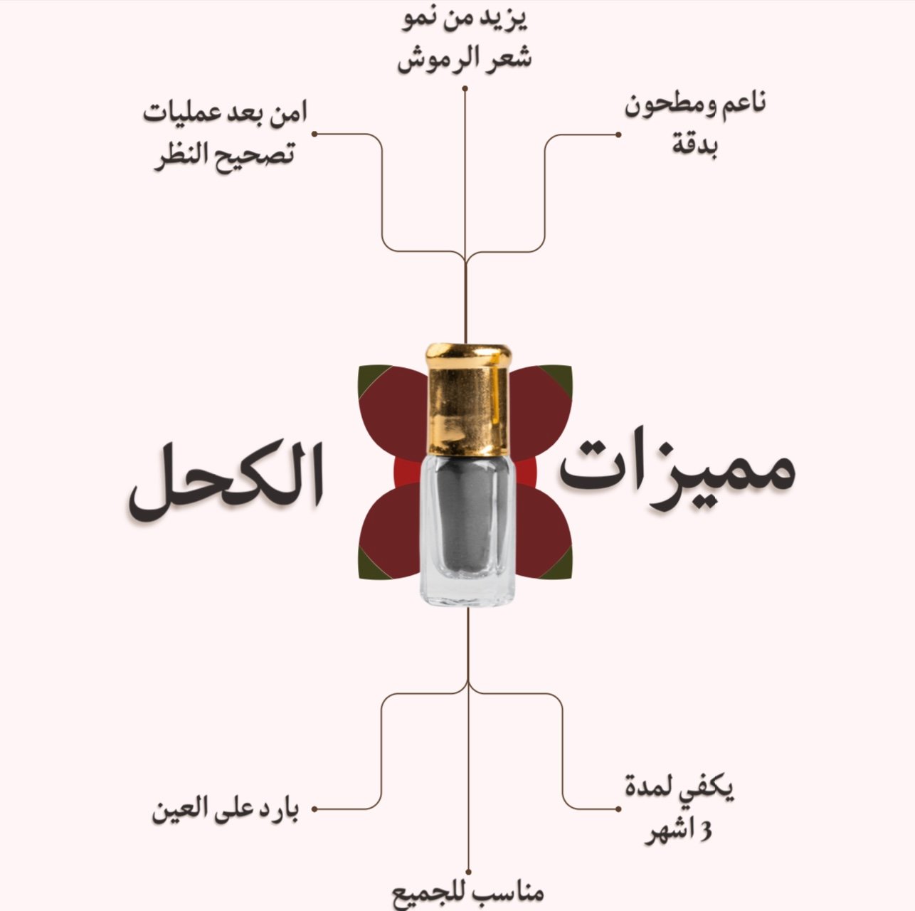 تقوية الرموش: يُعتقد أن استخدام كحل الاثمد يعزز من صحة الرموش، مما يؤدي إلى تقويتها وزيادة كثافتها.