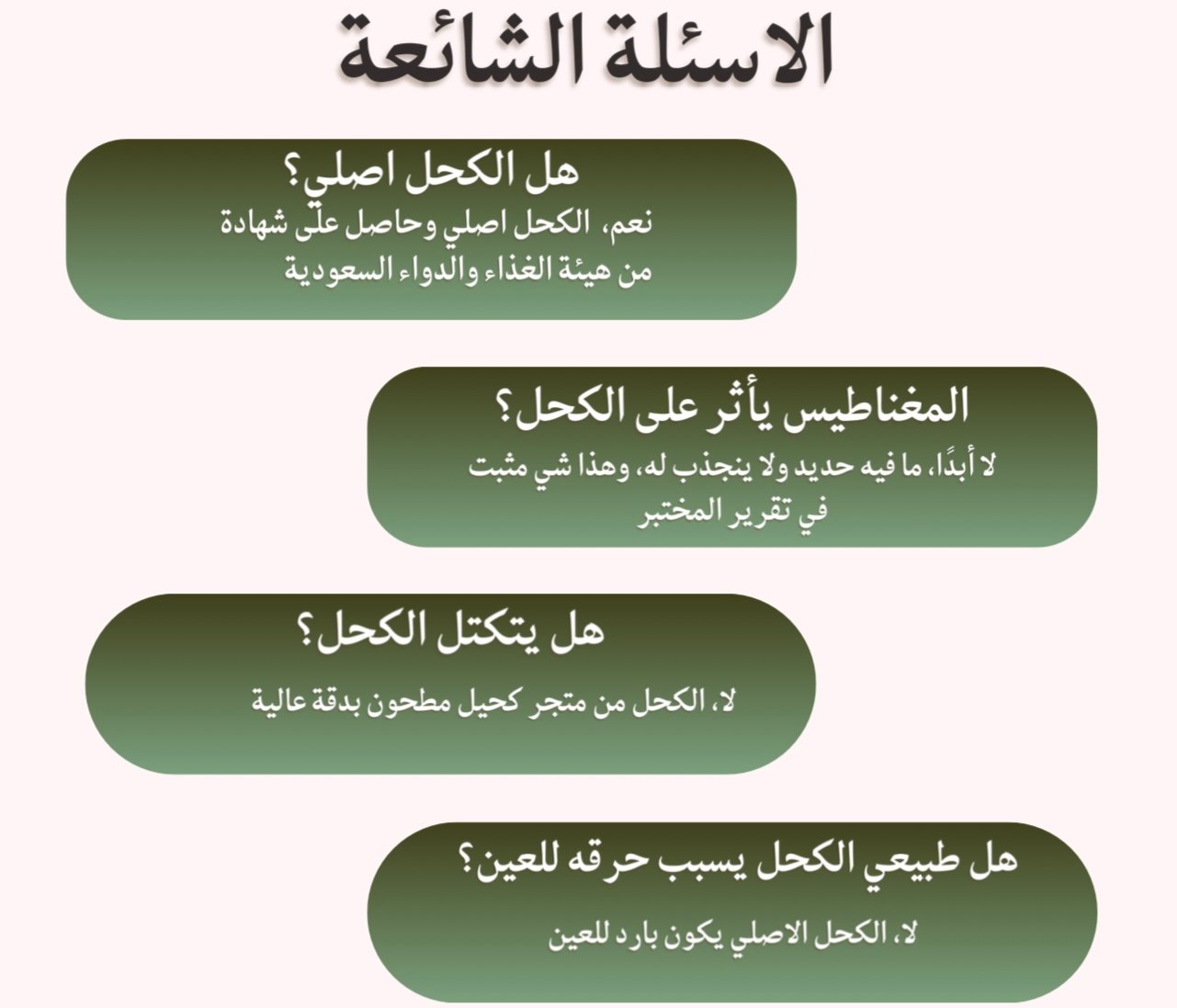• التأكد من المصدر: يجب شراء كحل الاثمد اصفهاني من مصادر موثوقة ومعروفة، مثل المحلات المتخصصة أو المتاجر الإلكترونية ذات السمعة الجيدة مثل متجر كحيل الإلكتروني الموثوق.